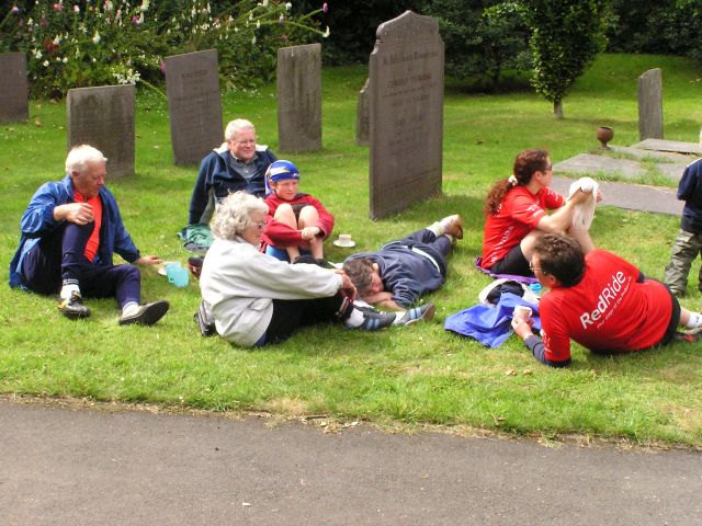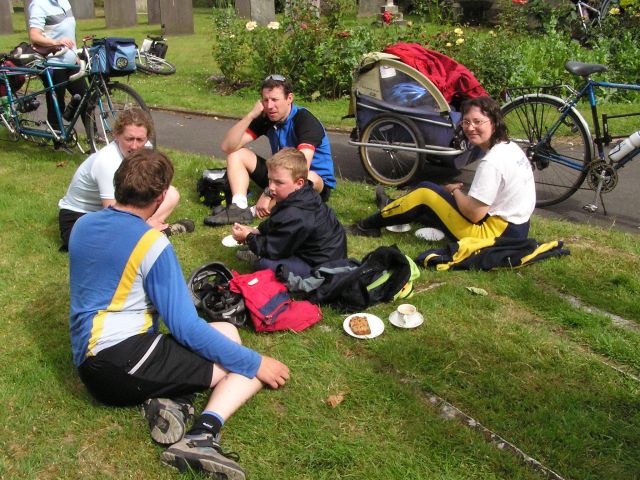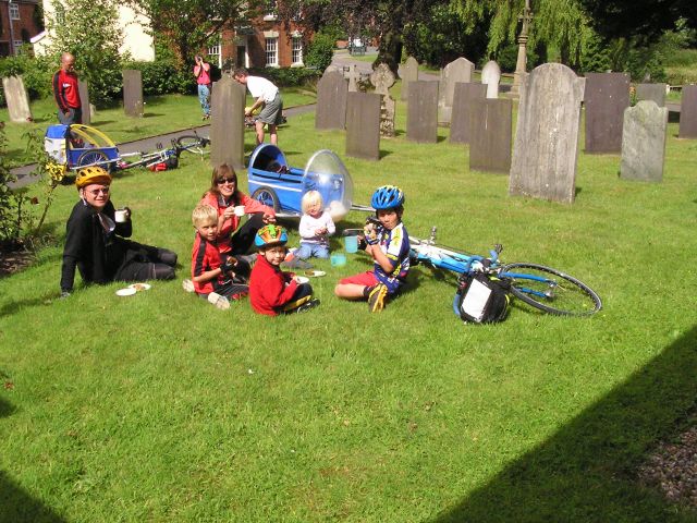 The Braybrooke family enjoying their tea amongst the graves. Phillip, Alexander, Susan, Matthew, Olivia and Christian. Note their "rocket trailer". ©Stephen Dee (ID7037600) |