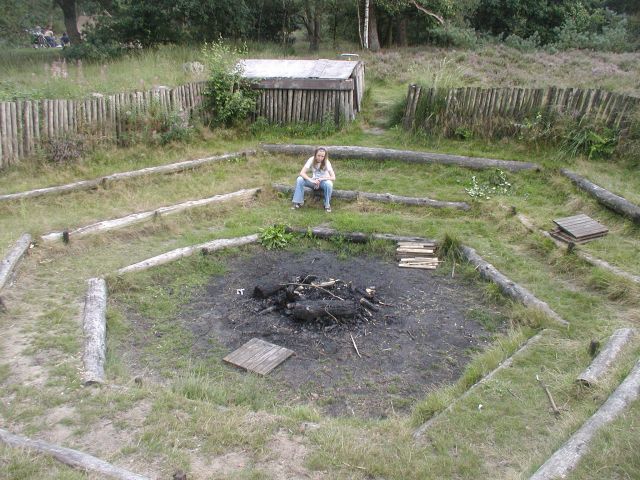 The camp fire stockade at the NTKC Den Treek site. We were invited to a camp fire here. İStephen Dee 10 Aug 2002 ID P810239