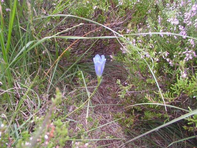 The rare flower that grows at Den Treek. This flower grows amongst the heather and grass at ground level, so care is needed not to tread on them. İStephen Dee 10 Aug 2002 ID P810239