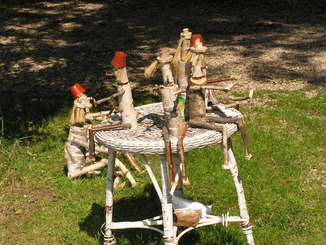We followed the ENECO Veuwe Route from Voorst to our next campsite near Ugchelen, near Appeldoorn. Along a quite track to the west of Klarenbeek we came across these little wooden people. Two off them hitched a lift - one as present for Mummy, the other for Melissa's grand parents. Both managed to loose their hats in their journey to Harwich. ©Stephen Dee 2 Aug 2004 ID P8028106