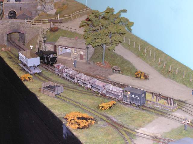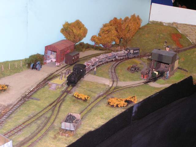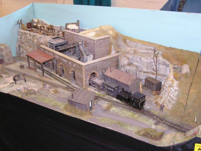 In addition, in the village hall, The Hazel Grove MRG were displaying their On16.5 narrow gauge layout Bugston Road. A 2-6-0 WD Baldwin arrives with a rake of hoppers.. ©Stephen Dee 15 May 2005 ID P5153367 |