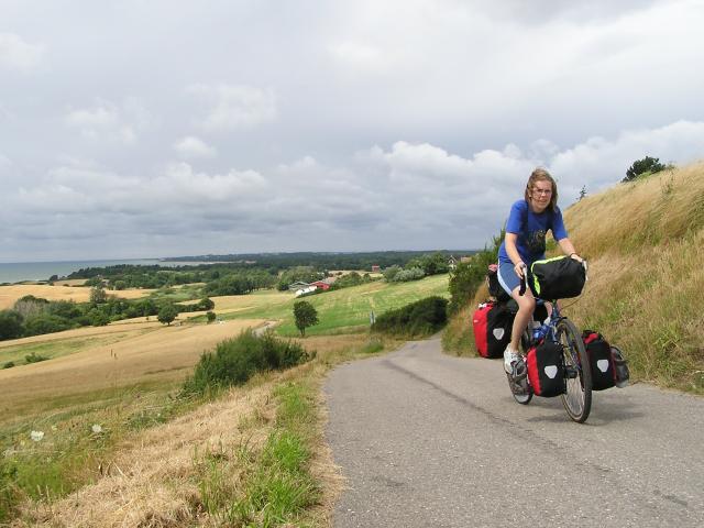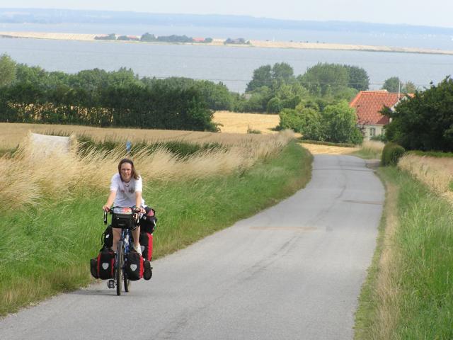 The cycle route along Sjælland Odde followed its south coast, and went up and down. This was the only hill that I used by lowest 20 inch gear whilst in Danmark! It was this road which reminded me a bit of Jersey - roads up and down around the coast with nice almost English rural views. ©Stephen Dee 20 July 2005 ID P7204778 |