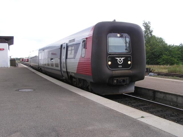 Having realised whilst reading the map on the Ferry that its was about 350Km from Sjælland Odde to the western end of Lolland at Tårs, we decided some train assistance was required. So from Lumsås we followed the road to Nykøbing S. From there we got the train to Vordingborg at the southern end of Sjælland. This involved two changes of trains and some confusion over tickets which meant on the first train, see picture from Nykøbing S to Holbæk only Ceri-Siân had a ticket! The ticket inspector on the train was helpful and after sorting out our tickets at Holbæk we continued on our journey, changing trains again at Høje Taastrup. The S in "Nykøbing S" I presume stands for Sjælland, as there is also a "Nykøbing F" on Falster - which would make an interesting train ticket from one to the other! ©Stephen Dee 20 July 2005 ID P7204781 |