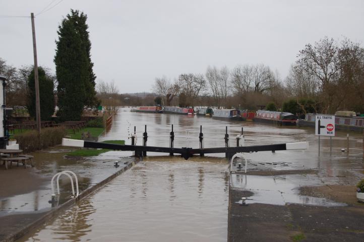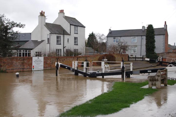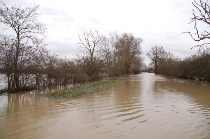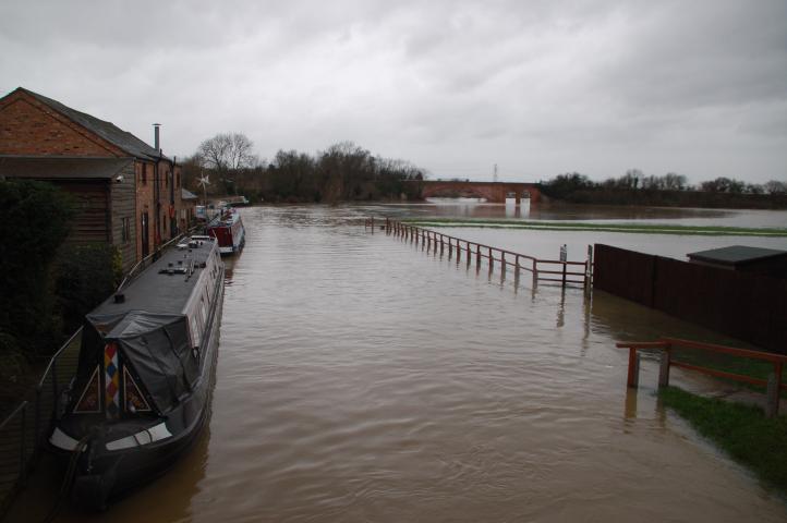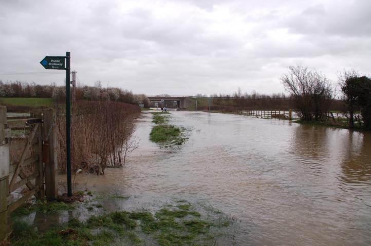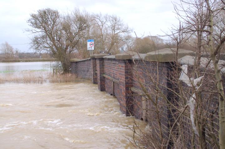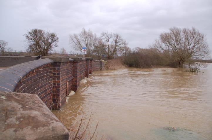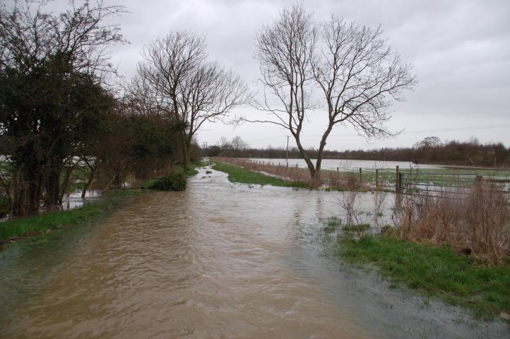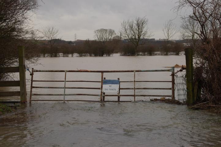 Looking north from the canal bridge, the river has spread across the surrounding fields and almost covered them completely. ©Stephen Dee ID 2007-03-05-17829 |