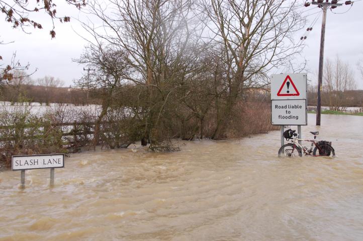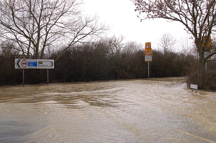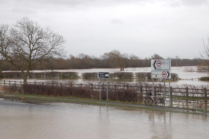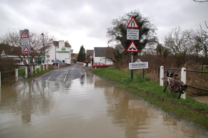 Slash Lane at its junction with Sileby Road. The sign is a bit of an understatement! My bike is standing on an elevated part of the road, the hubs are just above the water level. I had to carry my bike for much of Slash Lane and Sileby Road as the water was up above my knees! ©Stephen Dee ID 2007-03-05-17760 |